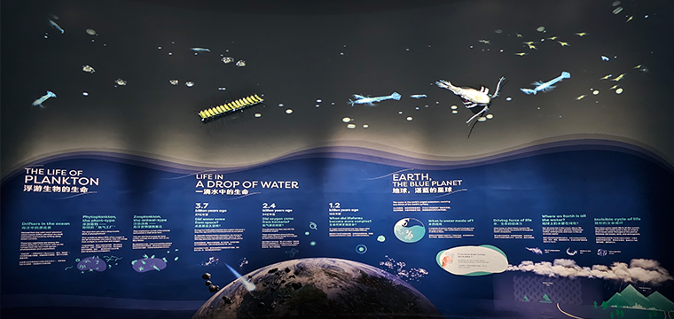 Life began in a single Drop of Water. Like ballet dancers on a stage, planktons prance across a giant water droplet to captivate visitors in this zone.
