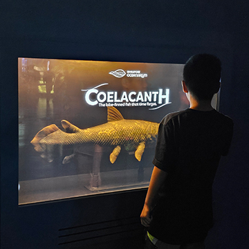 Visitors can see a replica come alive through an interactive transparent screen.