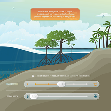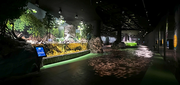 Visitors arrive at Singapore’s Coast to explore its diverse terrains and ecosystems. With careful observation, they may spot mudskippers on the flats, crabs among the rocks, and vibrant corals beneath the water, all brought to life through 3D projection mapping.