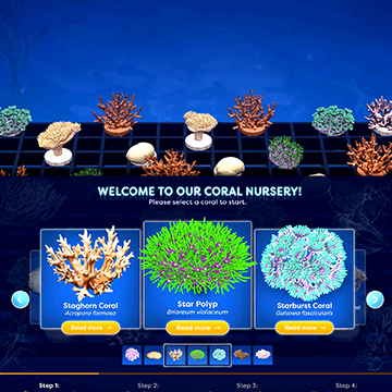 Through interactive experiences, they propagate and safeguard corals, take a virtual dive to join an ocean clean-up, and gain the skills to choose sustainable seafood in their everyday shopping.